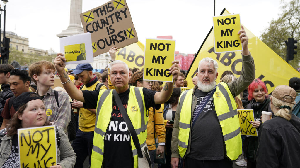 Autour de centaines de militants, arborant pancartes « Citizens not Subjects » (citoyens, pas sujets) ou « Abolish the Monarchy », des défenseurs de la royauté mi-amusés, mi-médusés leur répondaient par un « God save the King ».